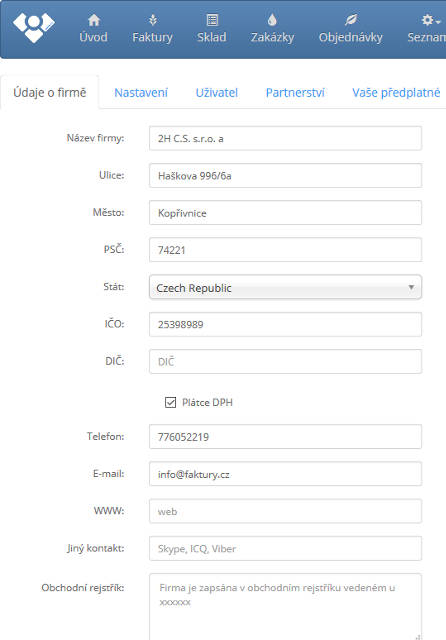 Jednoduše vytvoříte novou firmu, nastavíte uživatele, kteří s ní mohou pracovat. Nejsou zde žádná technická omezení. Jednoduše spolupracujte.