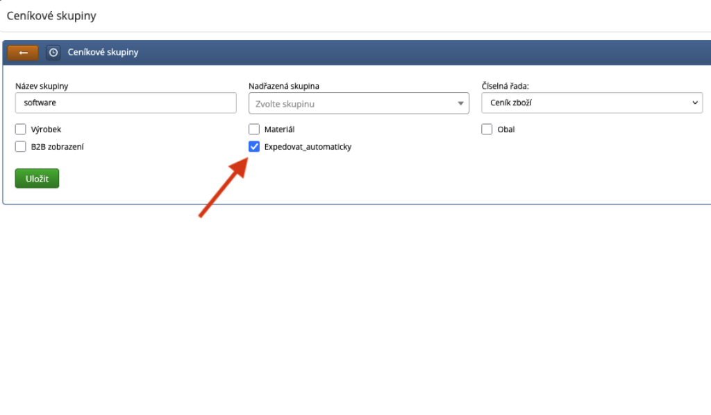 Položky, které jsou zařazeny ve skupině, která má aktivní volbu "Expedovat automaticky", budou mít hned při otevření expedičního dokladu nastaveno celé zkontrolované množství.