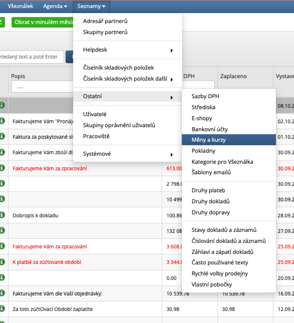 Stejně tak můžete postupovat i v případě ostatních měn a druhů plateb.