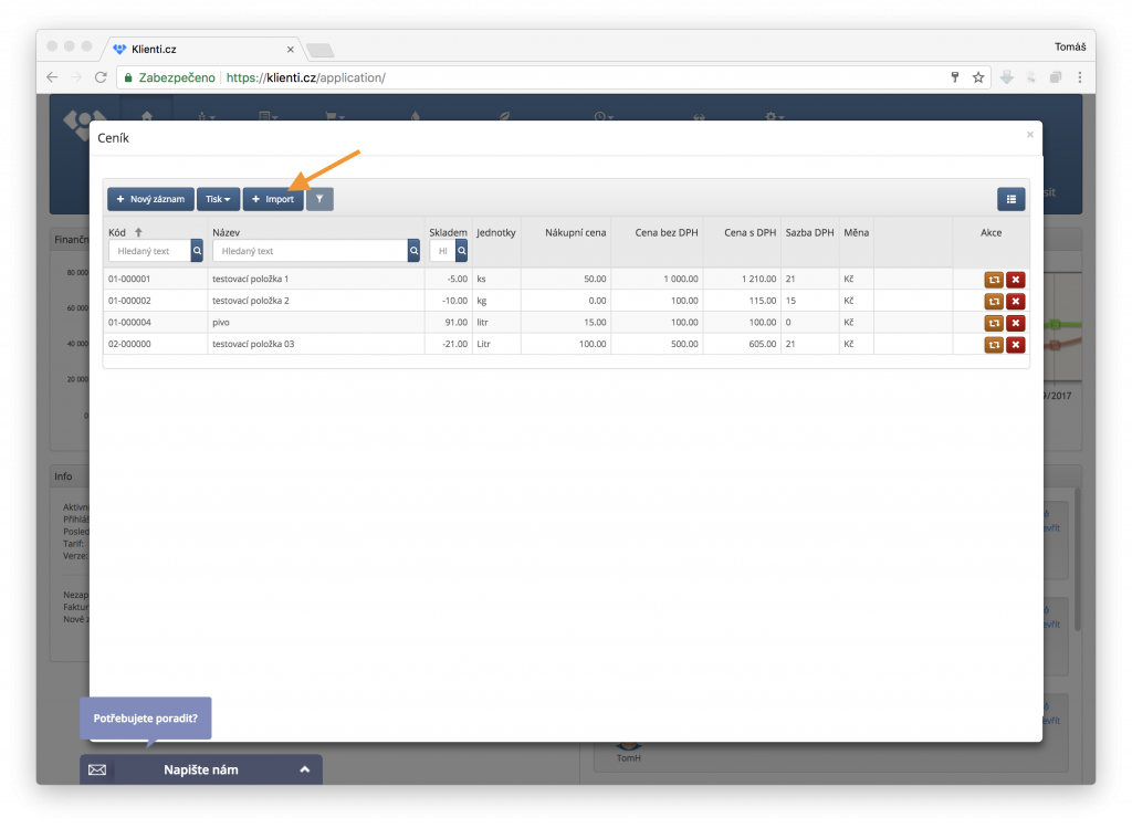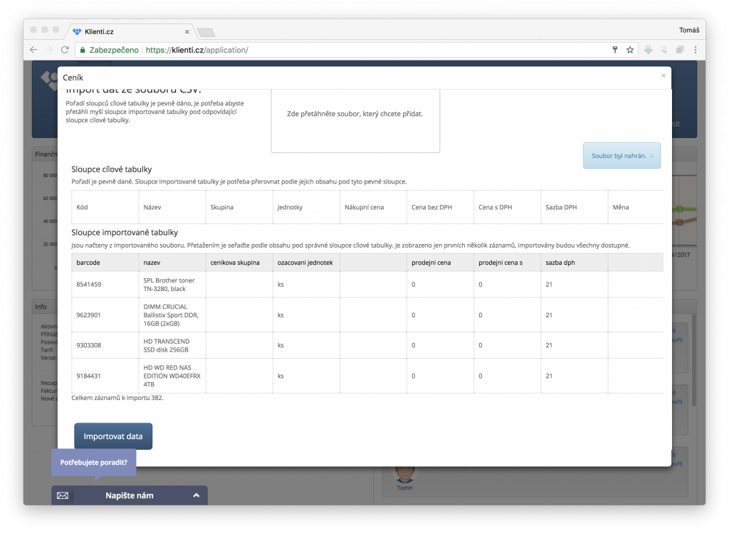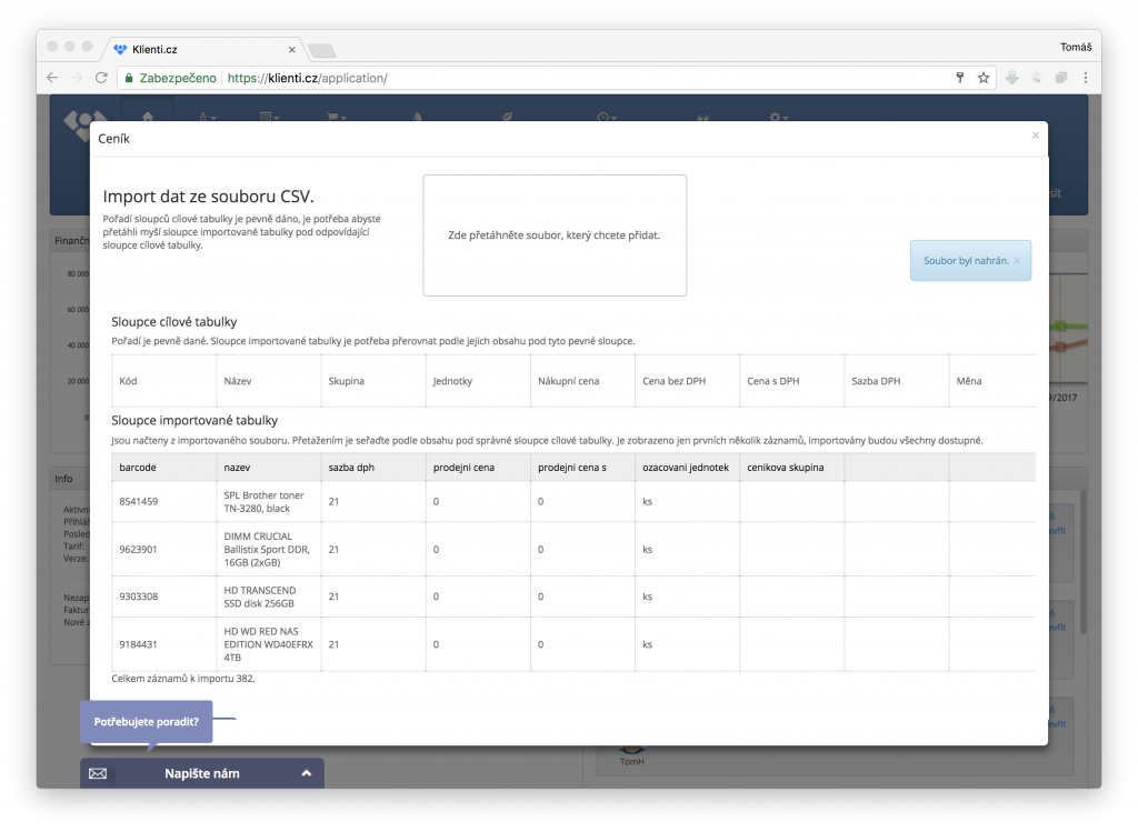 Máte ceník nebo seznam svých odběratelů a dodavatelů vyexportovaný z jiného programu ve formátu CSV? Pak jej můžete bez potíží načíst do aplikace Klienti.cz .