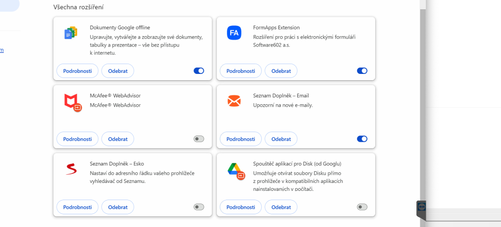 V případě potíží doporučujeme deaktivovat naposledy přidaná rozšíření prohlížeče a sledovat zda se situace zlepší. Nebo můžete pro webovou aplikaci Trynx použít jiný prohlížeč, který nebude obsahovat žádná rozšíření, případně, pokud to autor rozšíření umožňuje, nastavit vyjímku pro www.klienti.cz