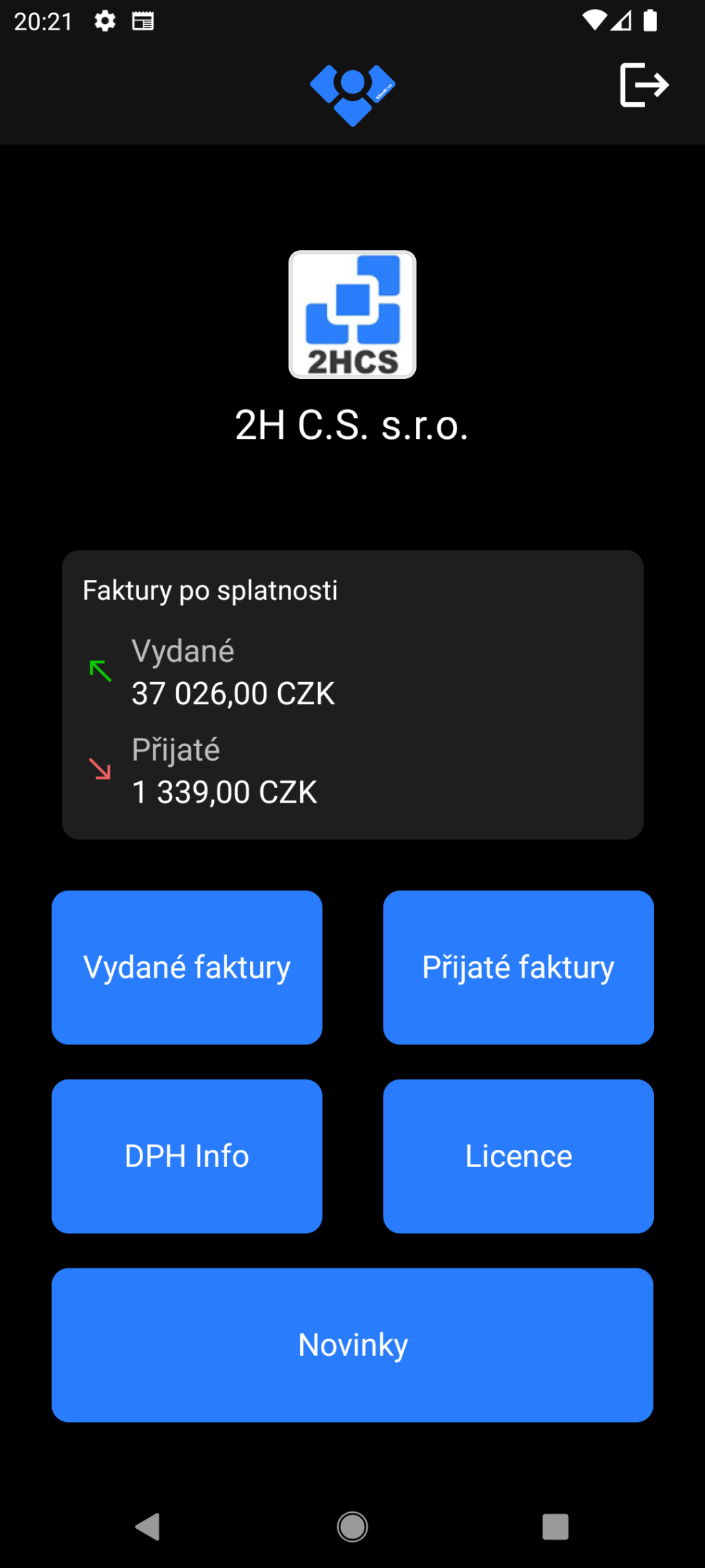 Po přihlášení uvidíte domovskou stránku aplikace s vašimi daty, podobně jako na obrázku níže.