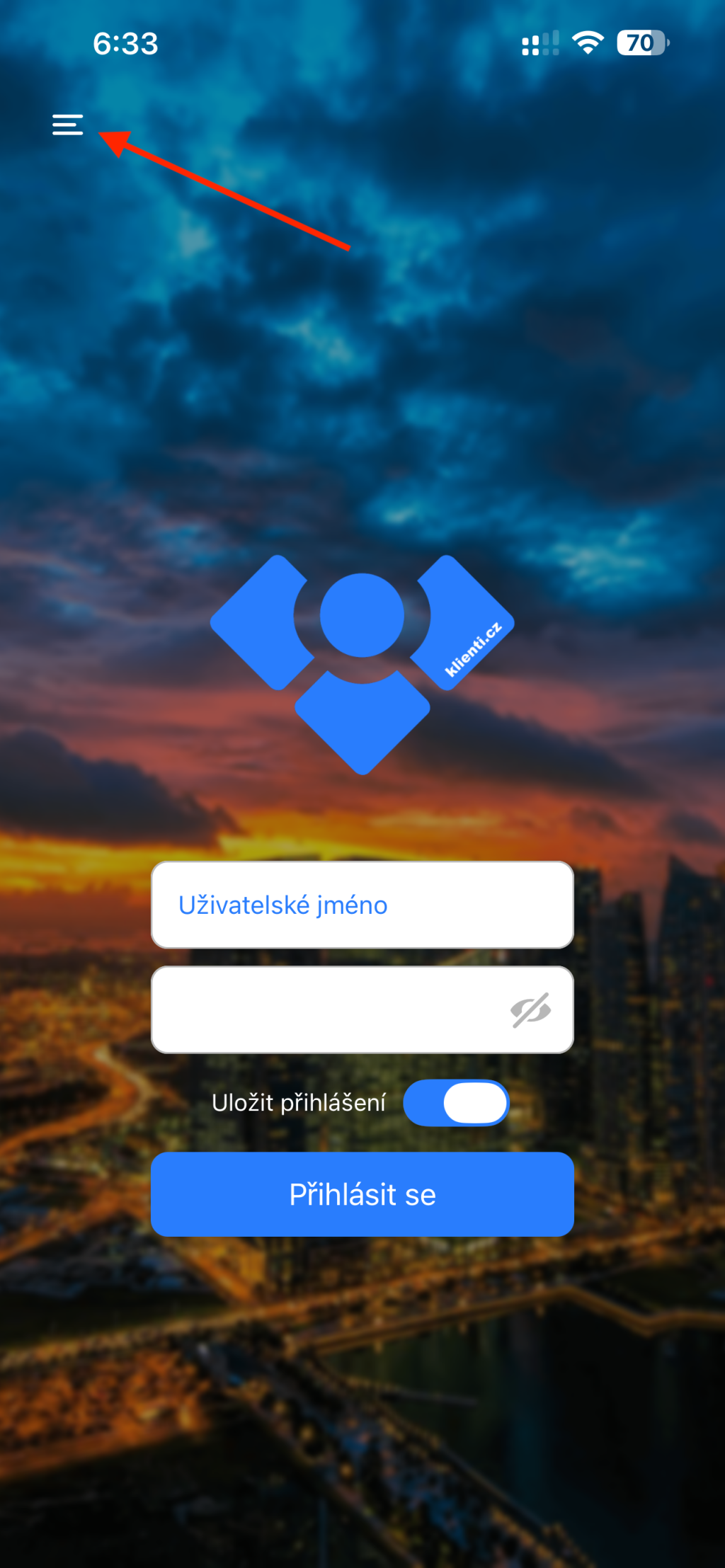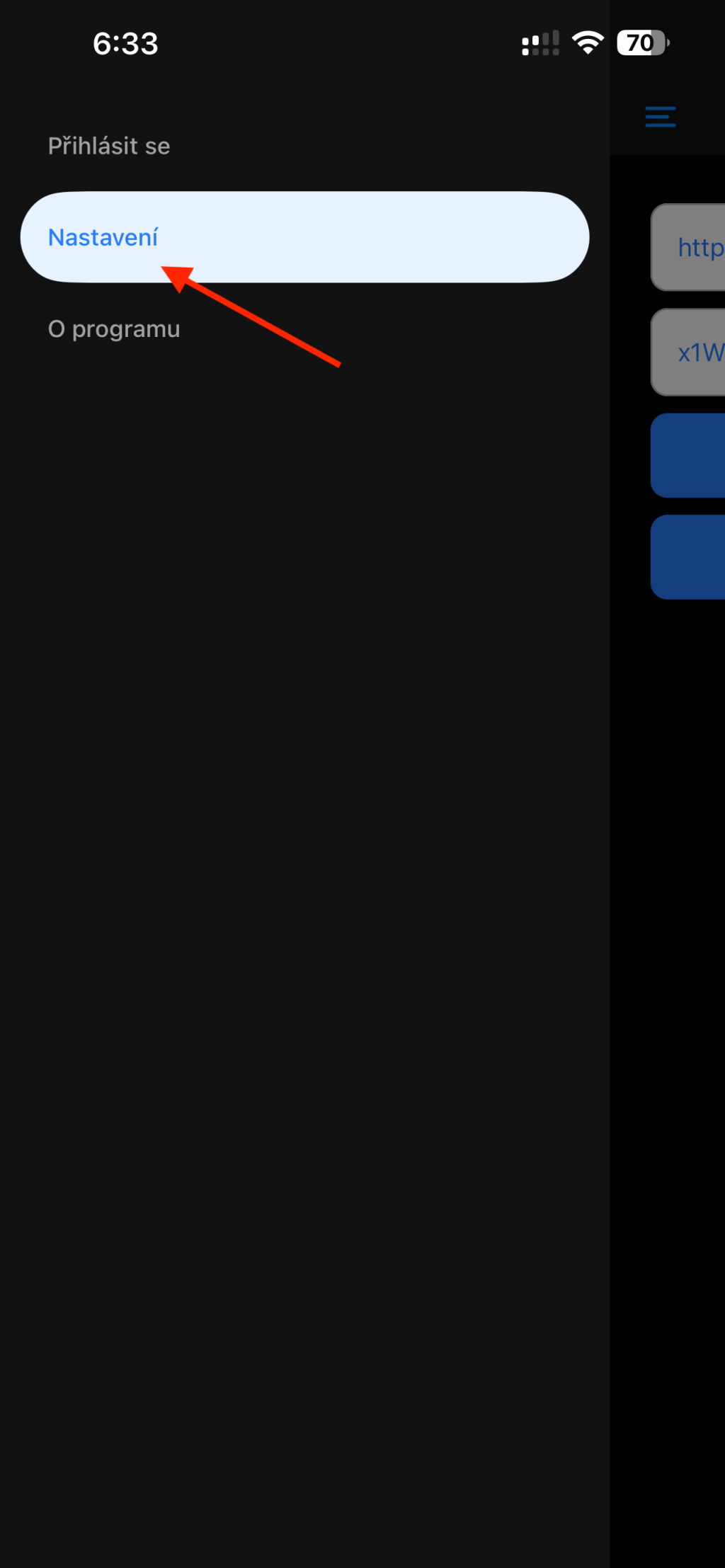 Nyní můžete v mobilní aplikaci otevřít nastavení kliknutím na ikonu vlevo nahoře na úvodní obrazovce.