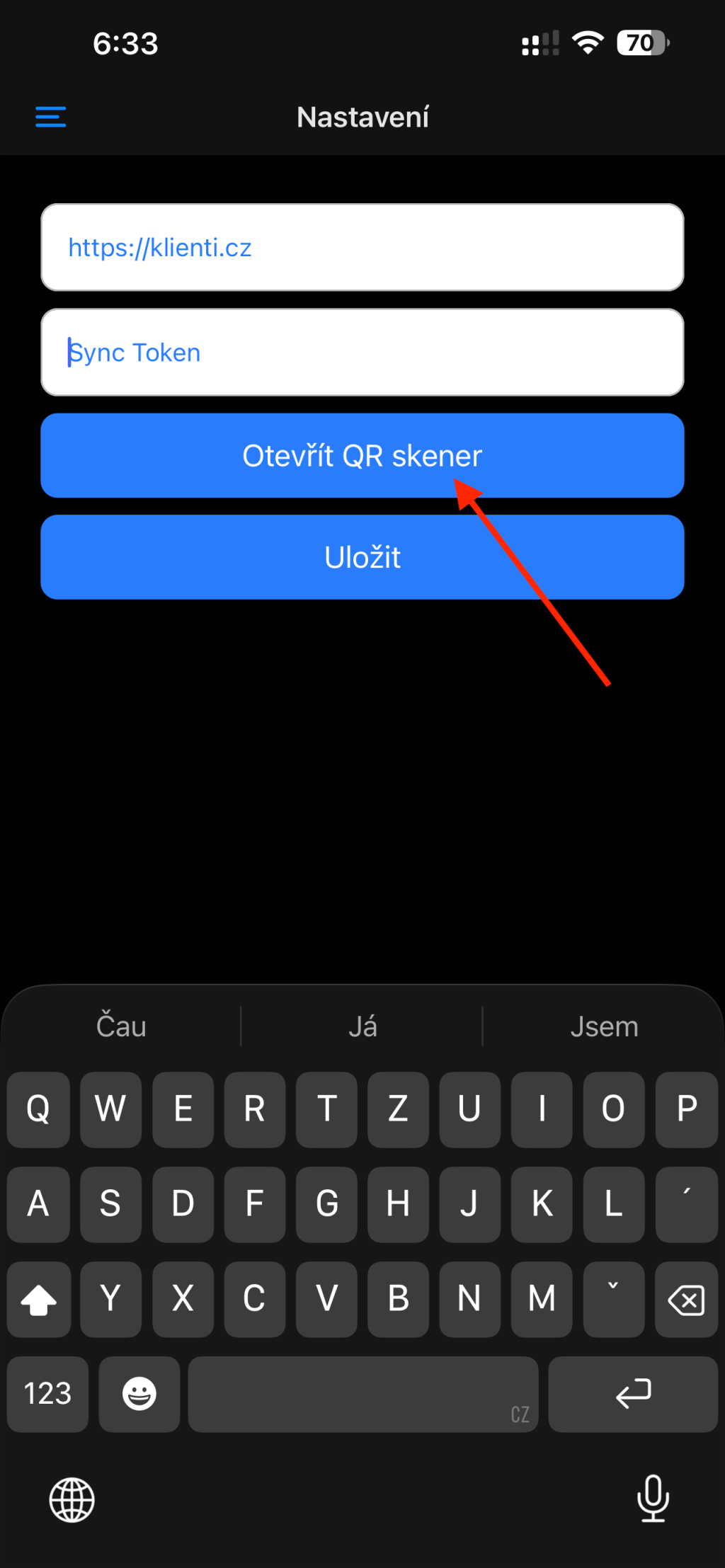 Poté klikněte na tlačítko "Otevřít QR skener" a pak naskenujte z obrazovky počítače "ověřovací kód", který jste vygenerovali v předchozím kroku.