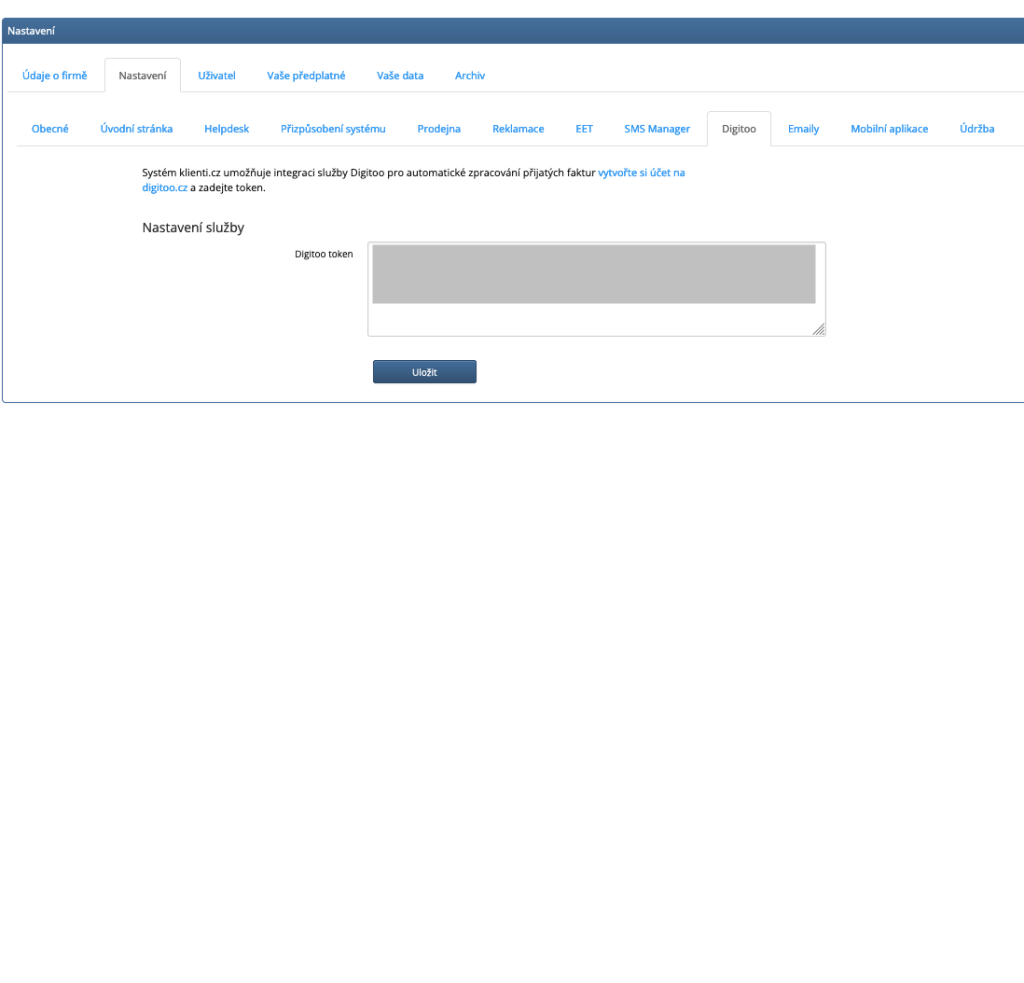 Digitoo token – zkopírujte a zadejte token ze služby Digitoo.