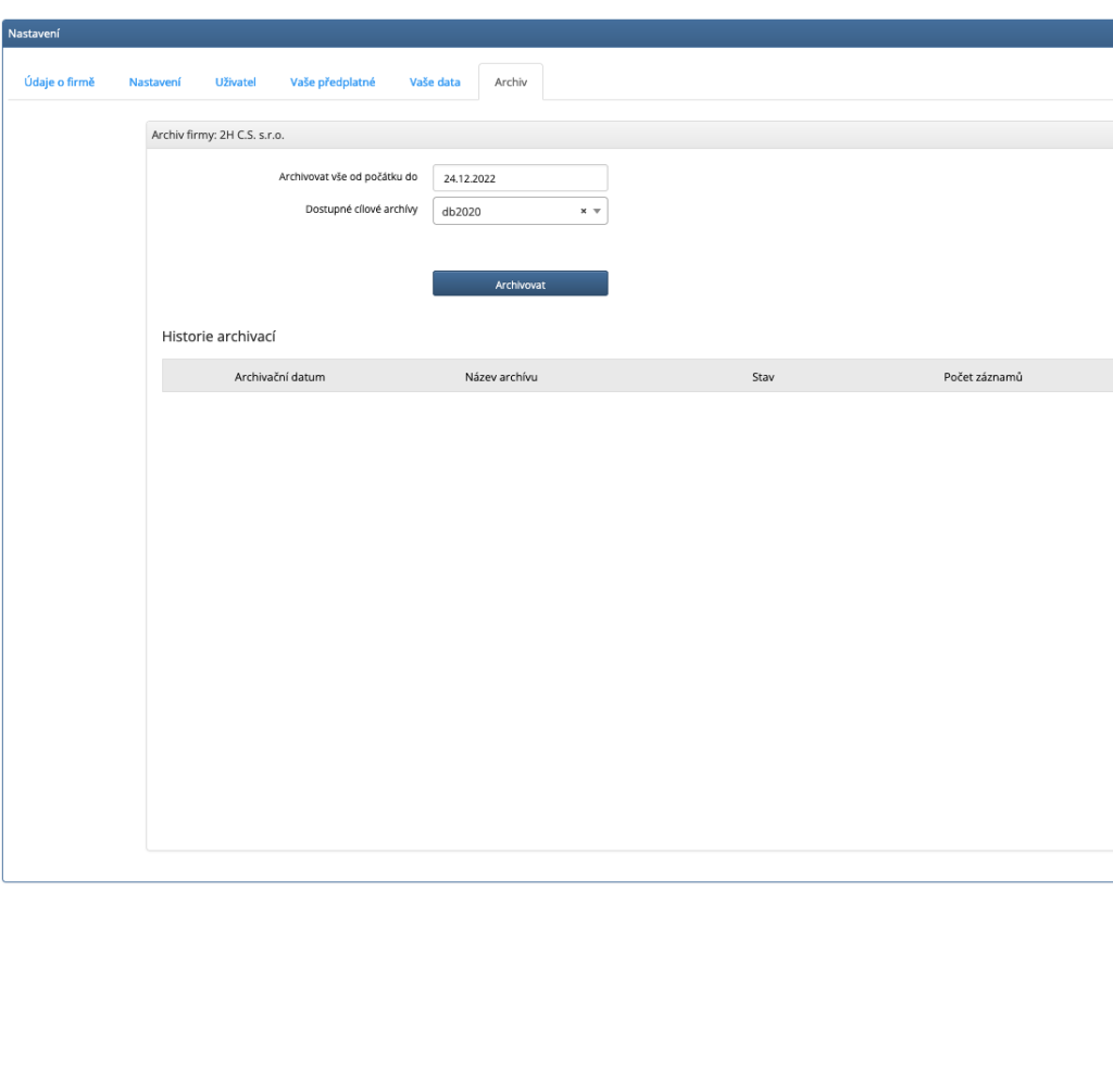 V tabulce „Historie archivací“ uvidíte kdy a kolik záznamů bylo archivováno.