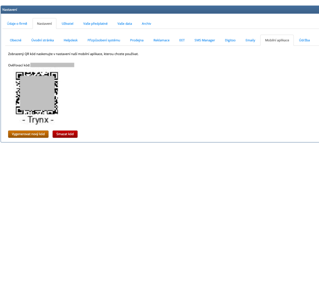 Vygenerovat nový kód – tímto tlačítkem vytvoříte nový kód. Starý kód bude nahrazen novým. Pokud nějaké zařízení používalo starý kód, nebude se již moci připojit.