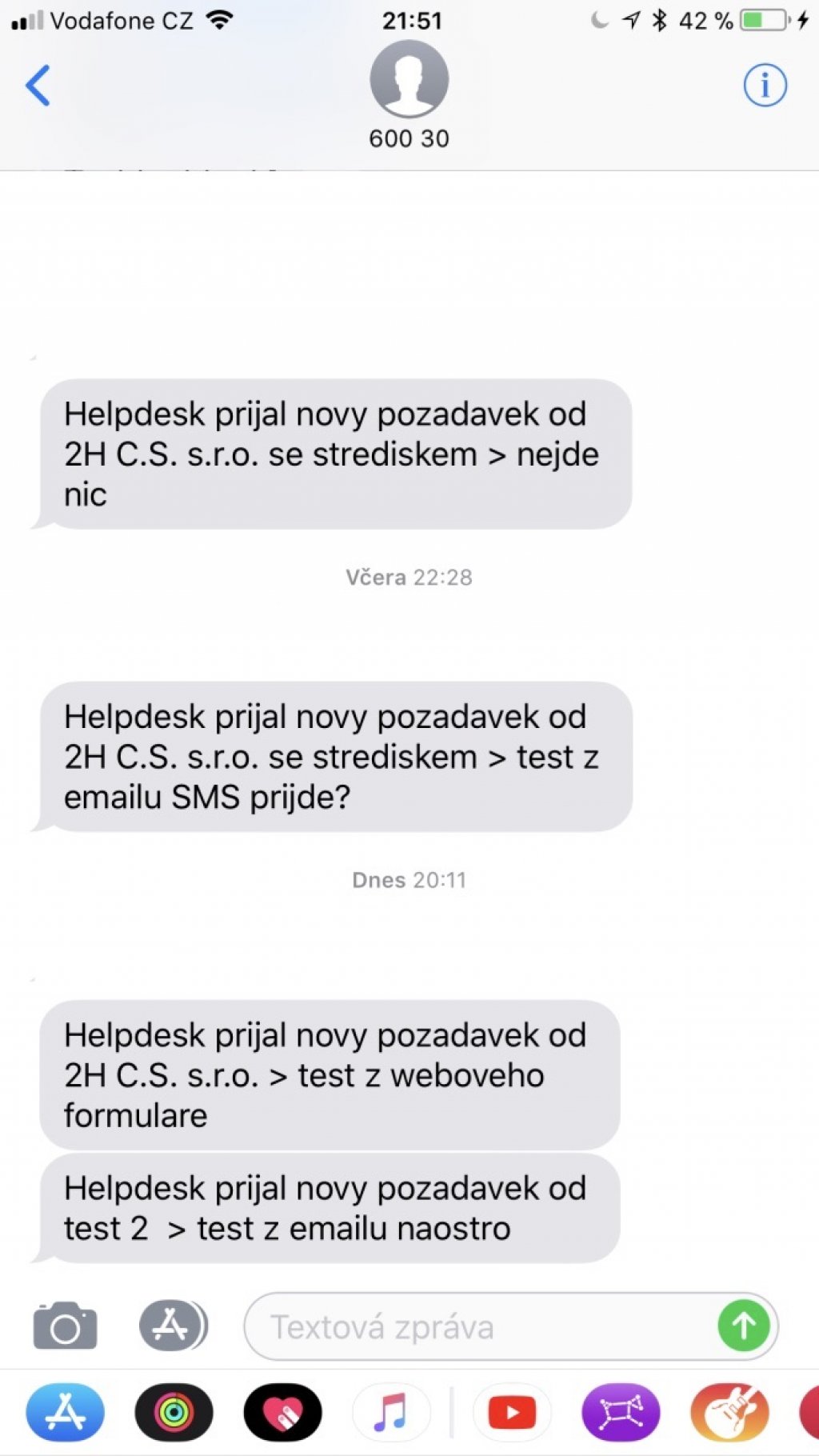 Na zadané telefonní číslo správce helpdesku vám pak budou chodit SMS jako jsou tyto.
