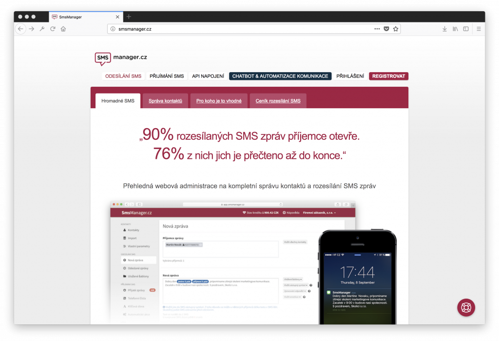 SMS zprávy mohou být doručovány během několika málo sekund, nebo pokud preferujete levnější variantu tak během dvou hodin. Pro odesílání SMS zpráv využíváme službu smsmanager.cz, kde je potřeba mít aktivní účet s přednabitým kreditem.