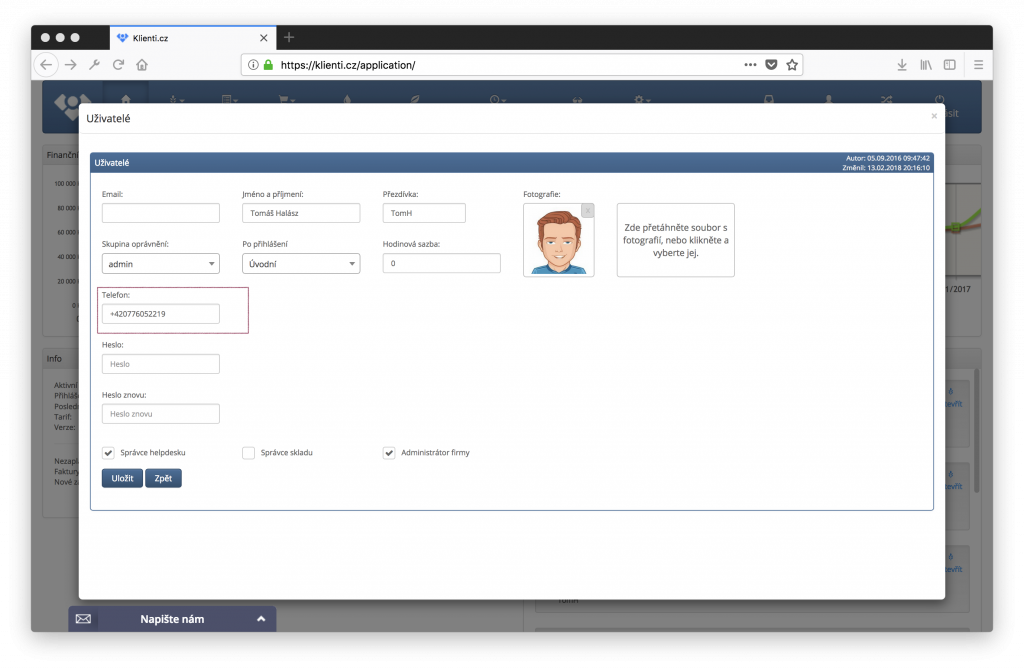 - v klienti.cz doplnit u svých správců helpdesku jejich telefonní čísla