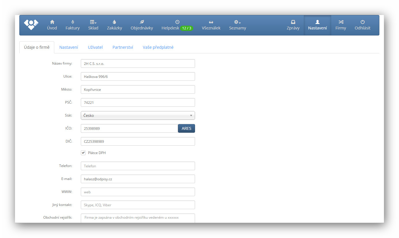 - Možnost práce s více firmami v jednom uživatelském účtu