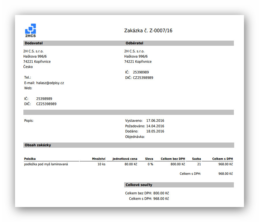 Pro každou zakázku můžete uložit zakázkový list do souboru PDF. Nebo je možné jej odeslat emailem klientovi.